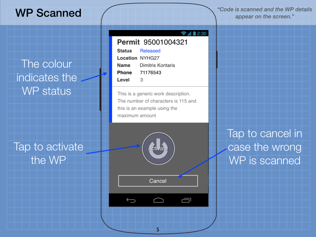 This project's brief was to come up with creative ideas for an app that would be used to scan paper permits' barcodes, in order to check the user's permission for entry to high security and/or high risk areas. The client was one of the Forbes 100 companies.